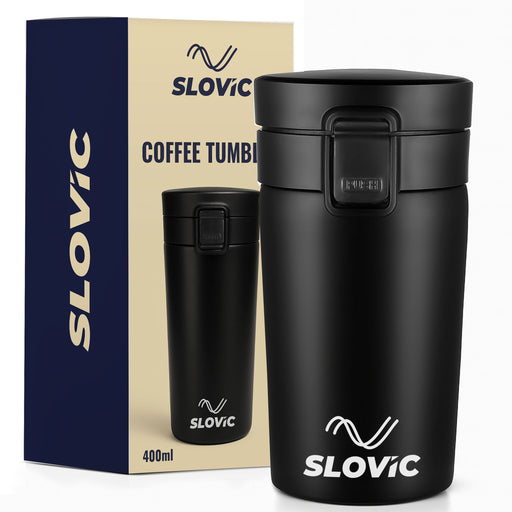 Experience convenience and style with the Slovic Vacuum Insulated Tumbler Bottle [400 ML] – Black, your ideal everyday companion for hot and cold b...